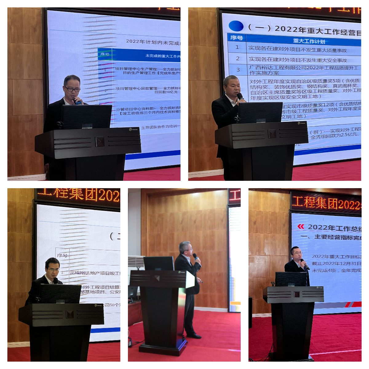 会议首先由工程公司分管领导就技术管理模块、回款结算模块、质量安全管理模块、施工生产管理模等进行2022年工作总结发言,分析工作中存在问题的根源,提出解决措施,并针对2023年的分管模块的经营目标,提出行动措施。