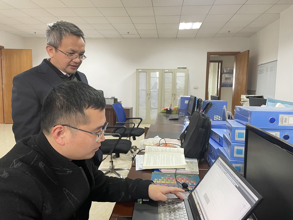 (总工程师兼副总经理袁复安、副总工程师骆海浪在测试现场考核)