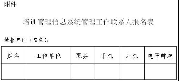 附件:培训管理信息系统管理工作联系人报名表