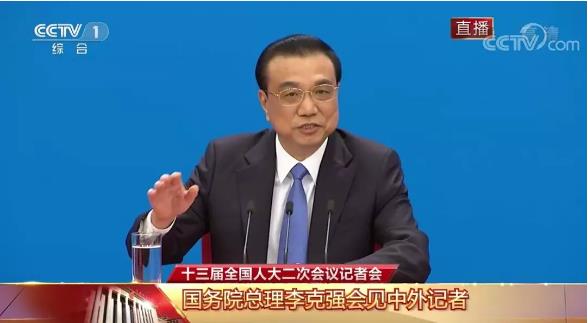 3月15日上午十三届全国人大二次会议闭幕后,国务院总理李克强在人民大会堂三楼金色大厅会见采访十三届全国人大二次会议的中外记者并回答记者提出的问题。