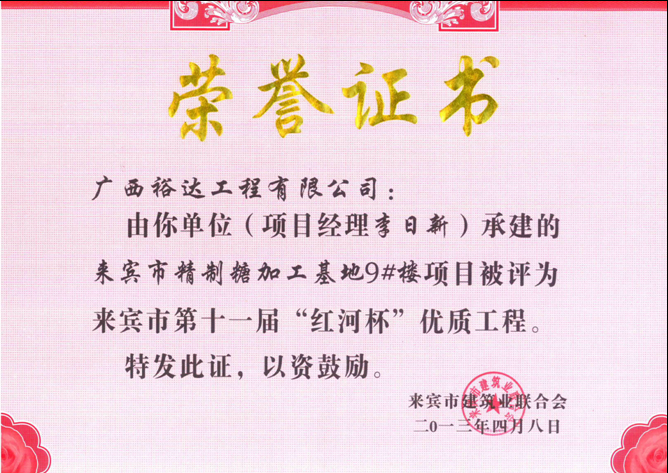 2013年来宾市第十一届“红河杯”优质工程