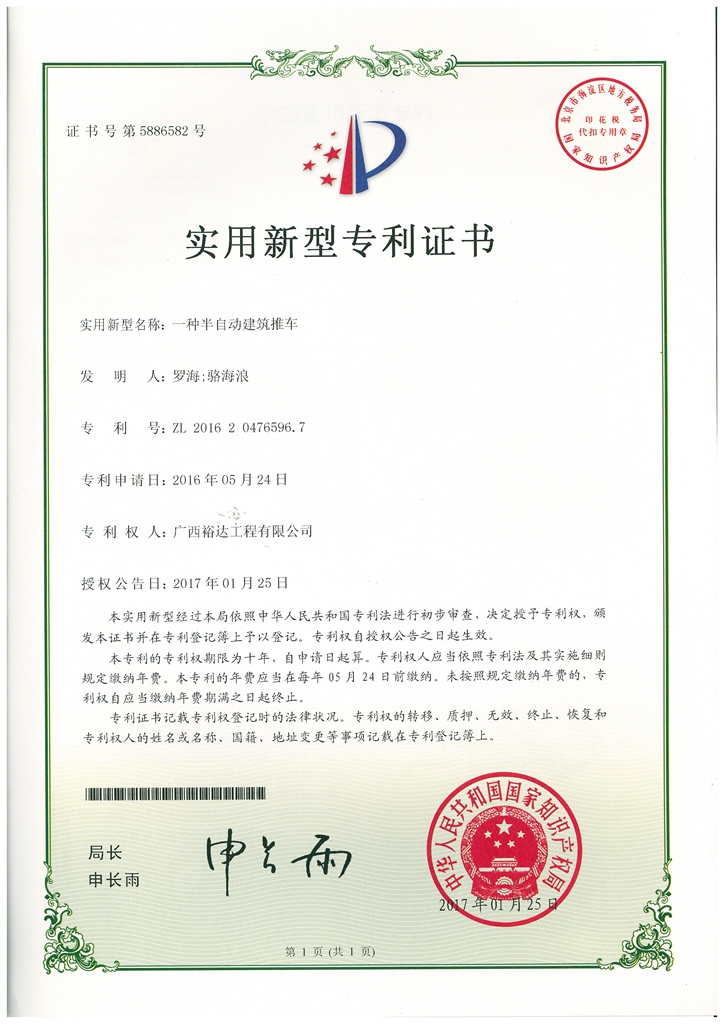 2017年实用新型专利证书(市政道路路面快速修复预制件)